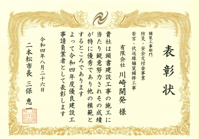 優良工事表彰Excellent style construction